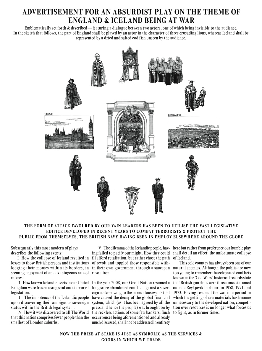 Advertisement for an Absurdist Play on the Theme of England and Iceland Being at War, 2009, printed poster