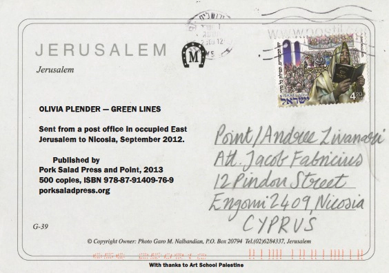 A series of postcards sent from a post office in occupied East Jerusalem to Nicosia September 2012