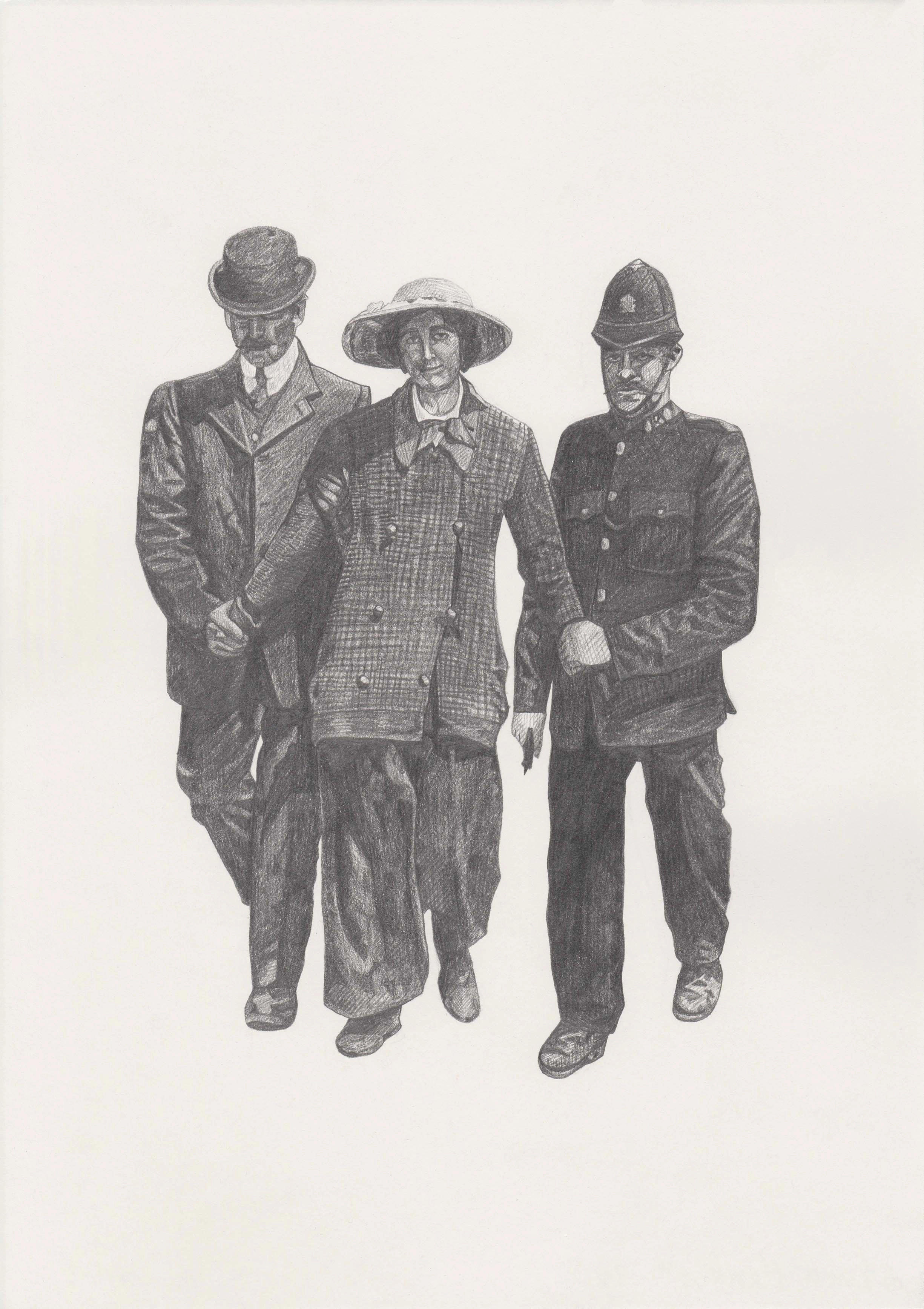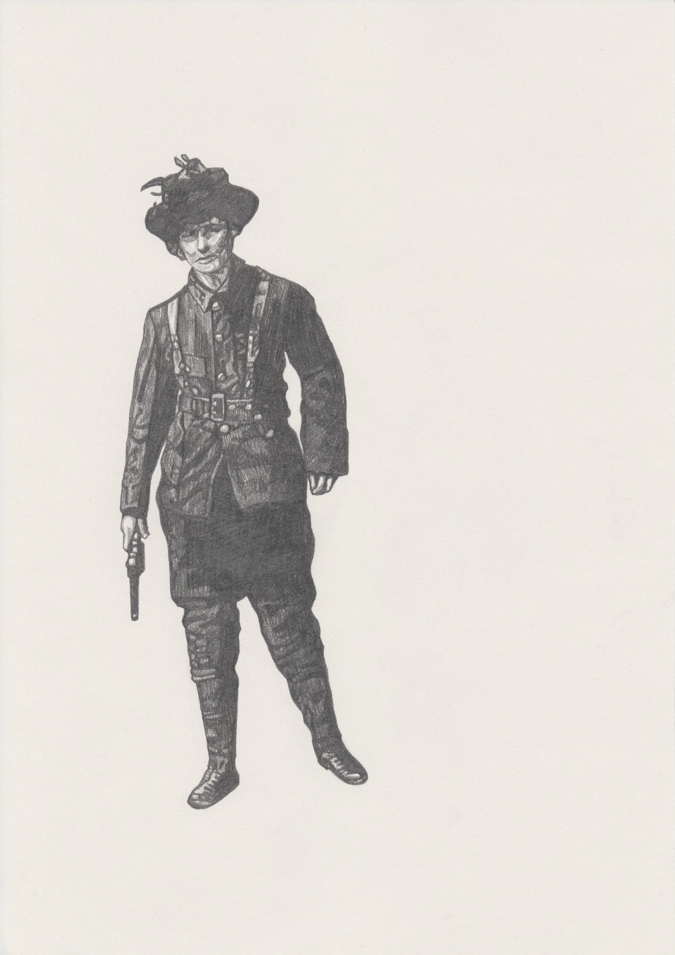 An ongoing series of drawings of female rebels, troublemakers, cross-dressers, lesbians and viragos affiliated with the suffragette movement.
