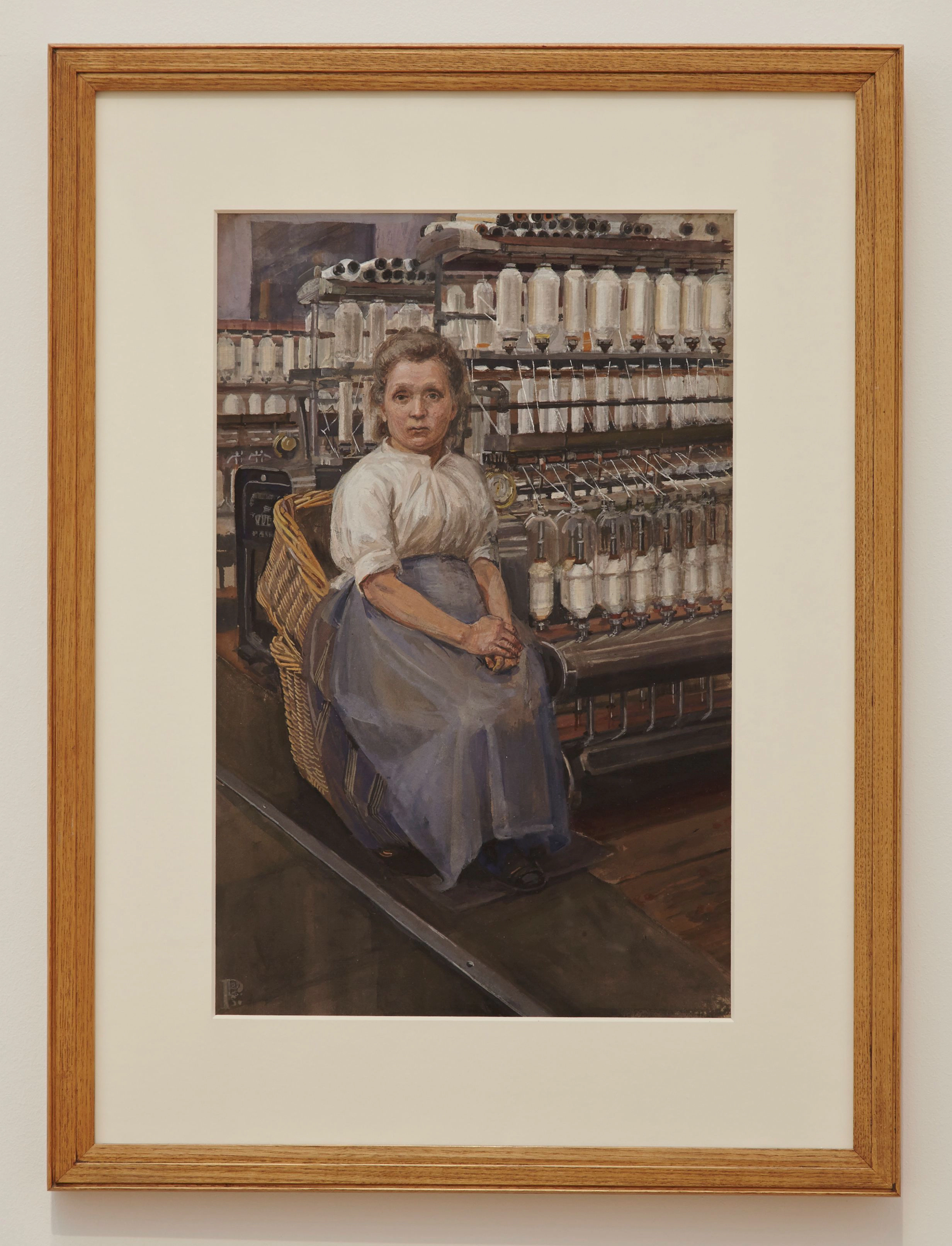The exhibition included paintings and drawings from a series titled The Women Workers (1907). These artworks were made on a tour of Britain that Pankhurst undertook in order to document the poor working conditions women were forced to endure in fields and factories. They originally accompanied journalistic articles by Pankhurst, in publications such as The London Magazine in November 1908, describing how working-class women were trapped in unskilled, low-paid and dangerous work, and laying out arguments for pay equality with men.