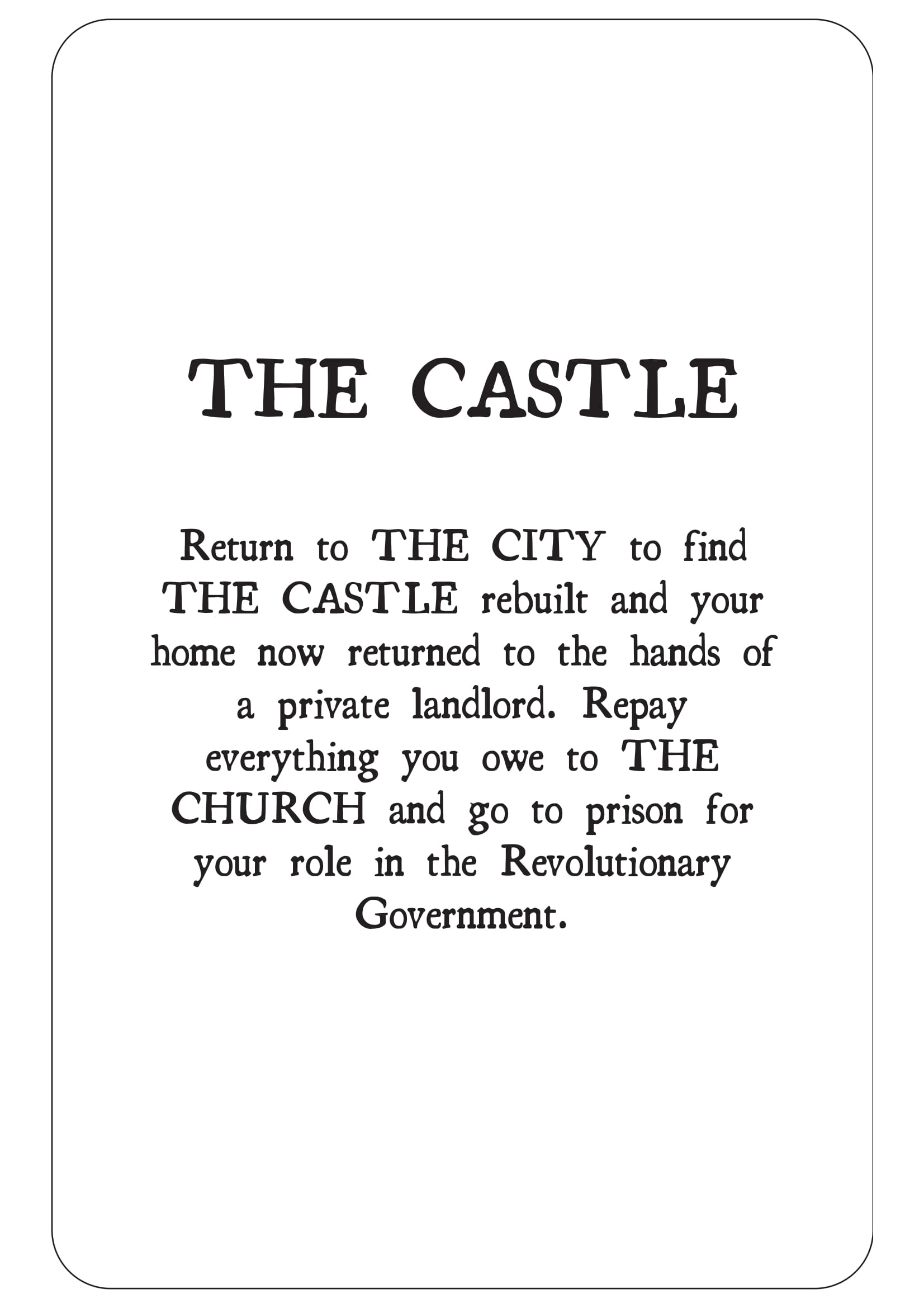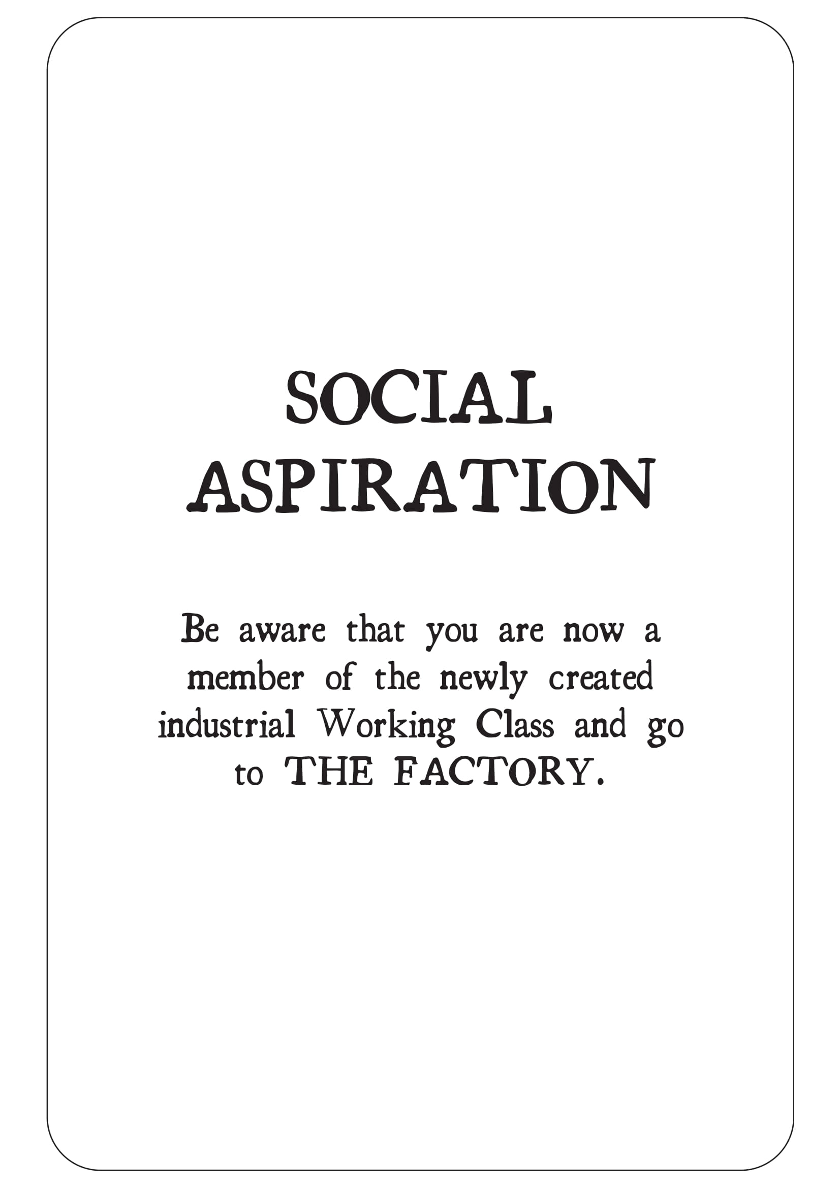 The board game tells the story of the enclosure of the commons, a process that began in Britain during the sixteenth century and continued into the nineteenth century. As described in the game’s rules, it was symbolic of the shift from feudalism to modernity and was essentially a privatisation of the land, whereby ‘commoners’ lost their traditional rights of access to the meadows and forests that had previously sustained them. Subsequently, the now impoverished rural poor were forced to migrate from the countryside into the factories of the newly industrialised cities in order to work for wages. In this rigged game, debt is the only feasible option with the sole avenue of release from the downward cycle being to ‘set sail to The Levant, where the law can’t reach you’. A player makes their fortune by reproducing this system of exploitation in the colonies, following which they are allowed back into the game at the top of the hierarchy: as the owner of the bank.