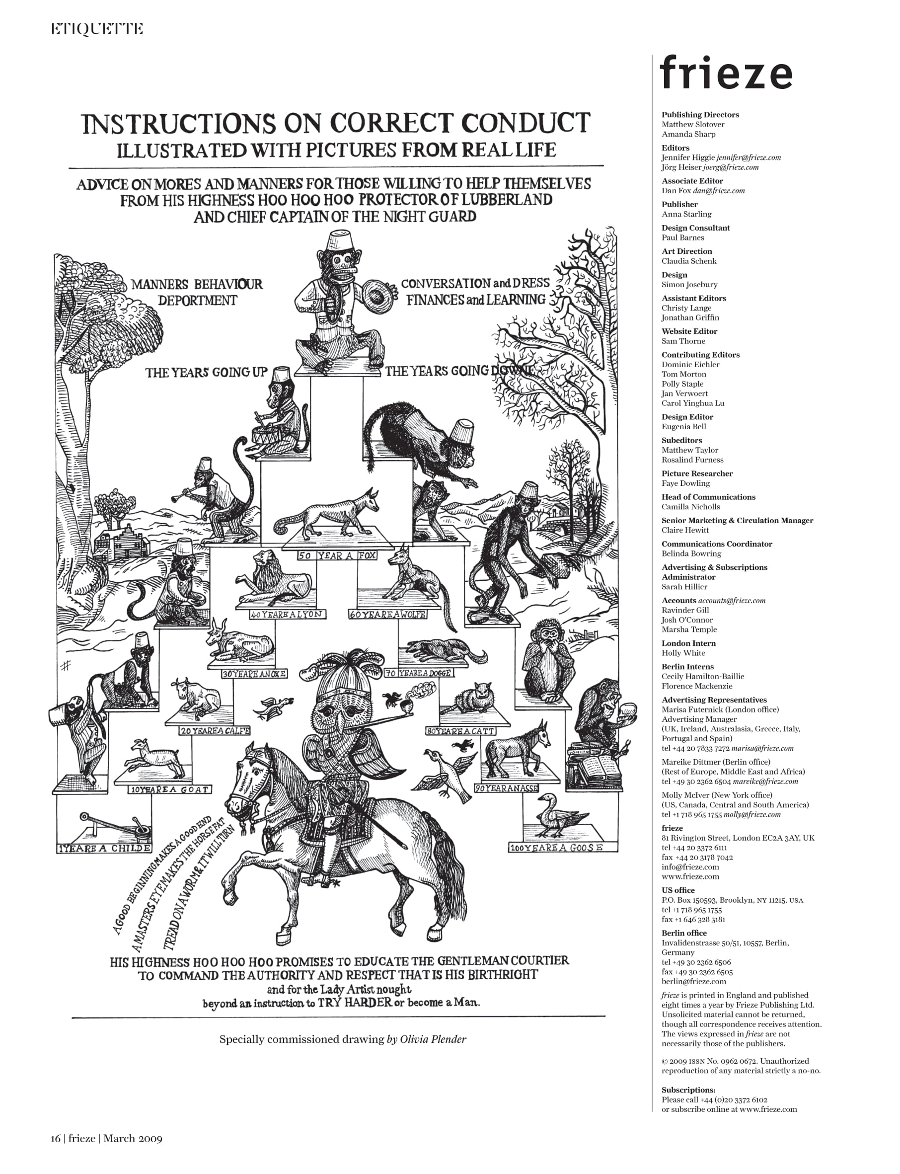 Prince Hoo Hoo Hoo’s first appearance in public, in a frontispiece that I drew for an ‘Elite’ themed issue of the art magazine Frieze, March 2009.