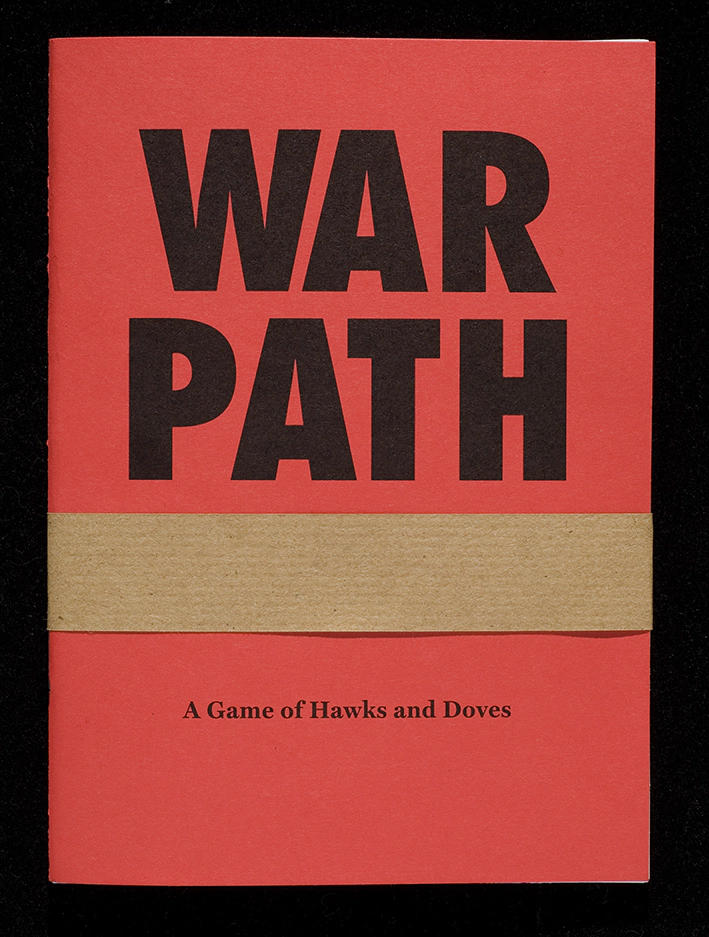 War Path is a game designed for visitors to Tate Britain to play in the museum. I developed it collaboratively with a group of young people (aged 15–21), for Visual Dialogues, based in the education department. A machine placed next to a painting by Paul Nash dispensed the game in exchange for a penny. The player received a kit that included a booklet, stickers and a map of Tate Britain – leading them around various war-themed artworks in the collection and posing a moral question at each stop. The target was to determine whether the player was a dove or a hawk.