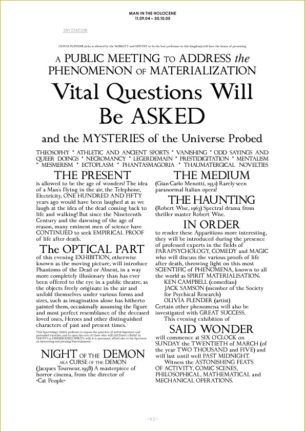 A Public Meeting to Address the Phenomenon of Materialisation, 2005