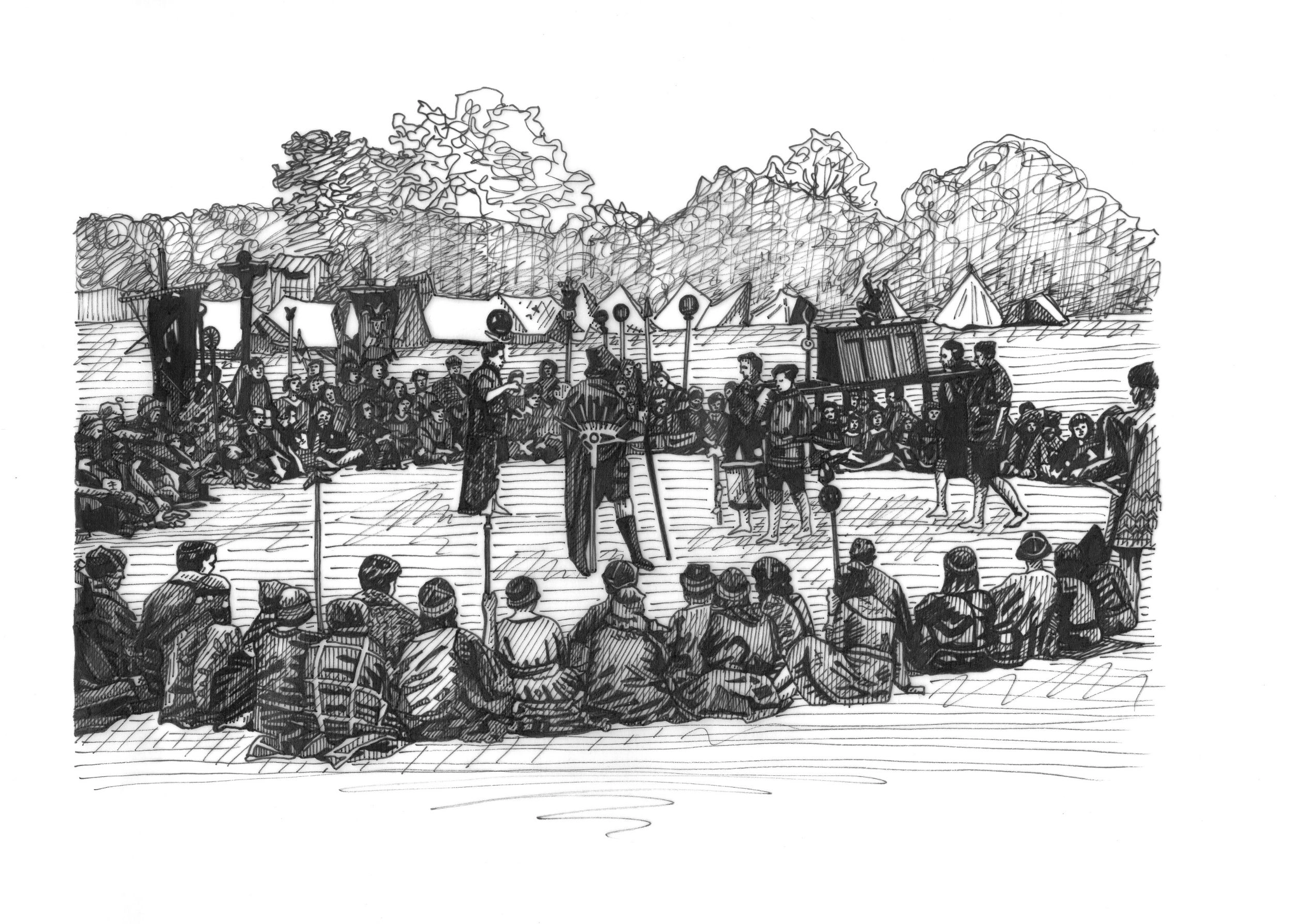 Bring Back Robin Hood interrogates the ways in which history can be instrumentalised for the sake of nationalistic idealisations of the past, particularly in times of economic and social crisis. Written as a personal travel log in 2007 and 2008, as the latest financial crisis was unfolding, the text and accompanying illustrations detail my investigation of the (then) little-known historical movement. The story is underpinned by a feeling that events are repeating themselves.