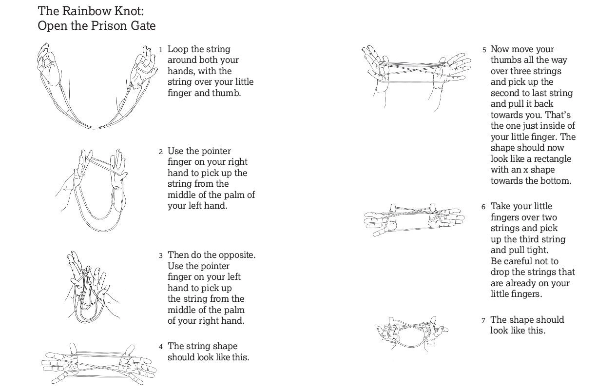 The Easton Fables are a collection of surreal short stories that I wrote together with a group of primary school children from the neighbourhood of Easton in Bristol. The fables are accompanied by new string games invented by the children, during a series of workshops I led at their school, in which I taught them how to play Cat’s Cradle. The games create an accessible but abstract platform to inspire storytelling, using these deceptively simple structures to draw on the children’s own experiences of difficult topics such as war and migration, as well as everyday life at school. In the stories we see how they grapple with the power relations between adults and children and express fundamental needs of safety, peace and happiness in a complex, confusing and often threatening adult world.