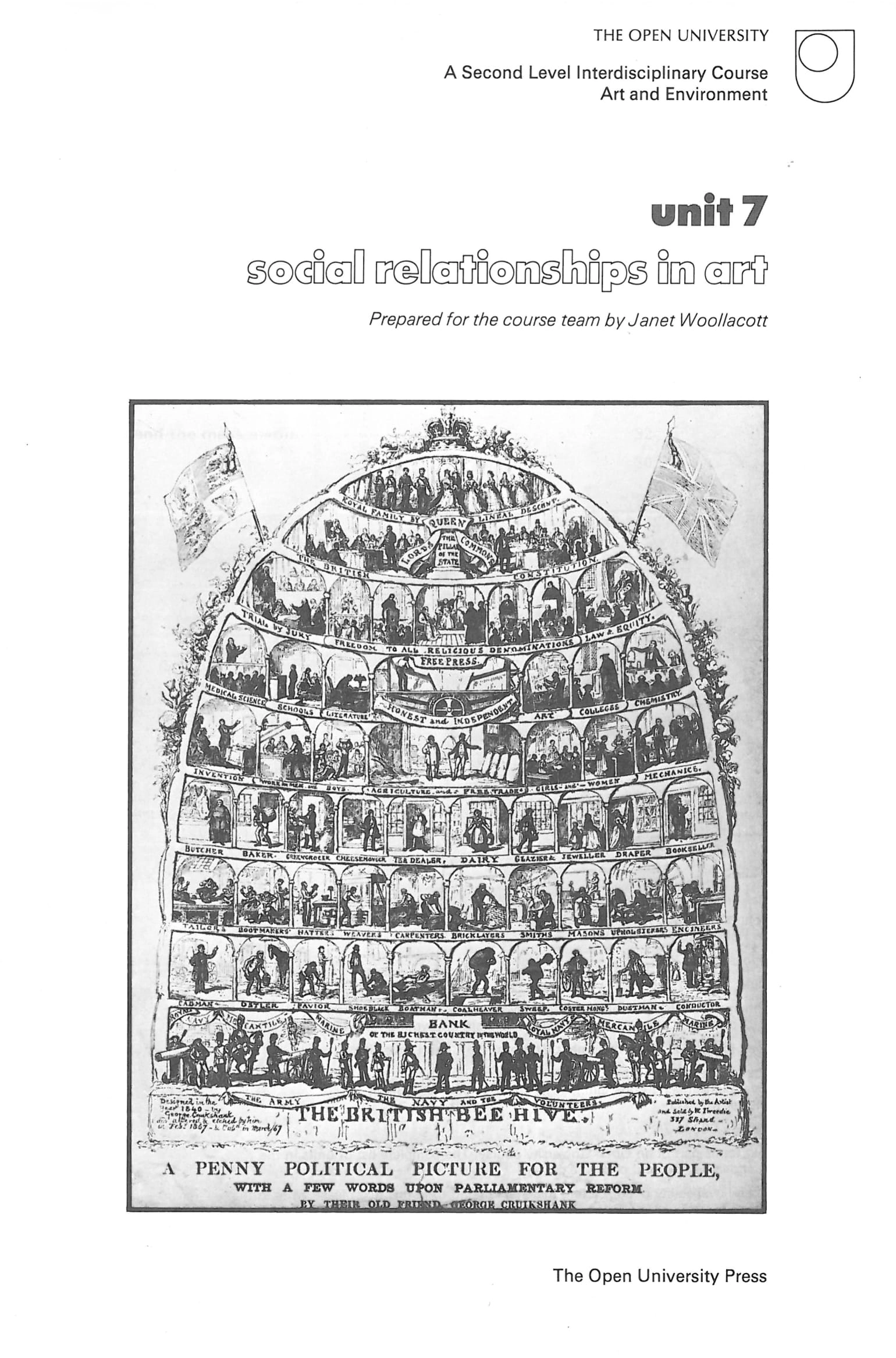 Social Relationships in Art, 1976, inside cover of Art and Environment course book showing George Cruikshank's The British Beehive (1867)